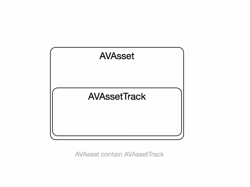 AVAsset本身不是媒体资源. 可以把它理解成承载timed media(时基媒体)的容器类。它有很多描述自身元数据的媒体组成. AVAssetTrack才是我们真正存储媒体资源的统一媒体类型。并对每个资源建立相应的model. AVAssetTrack最常见的形式就是 音频流和视频流, 但是他还可以用于表示诸如__文本__、副标题、__隐藏字幕__等媒体类型. 如下示意图理解AVAsset 和 AVAssetTrack