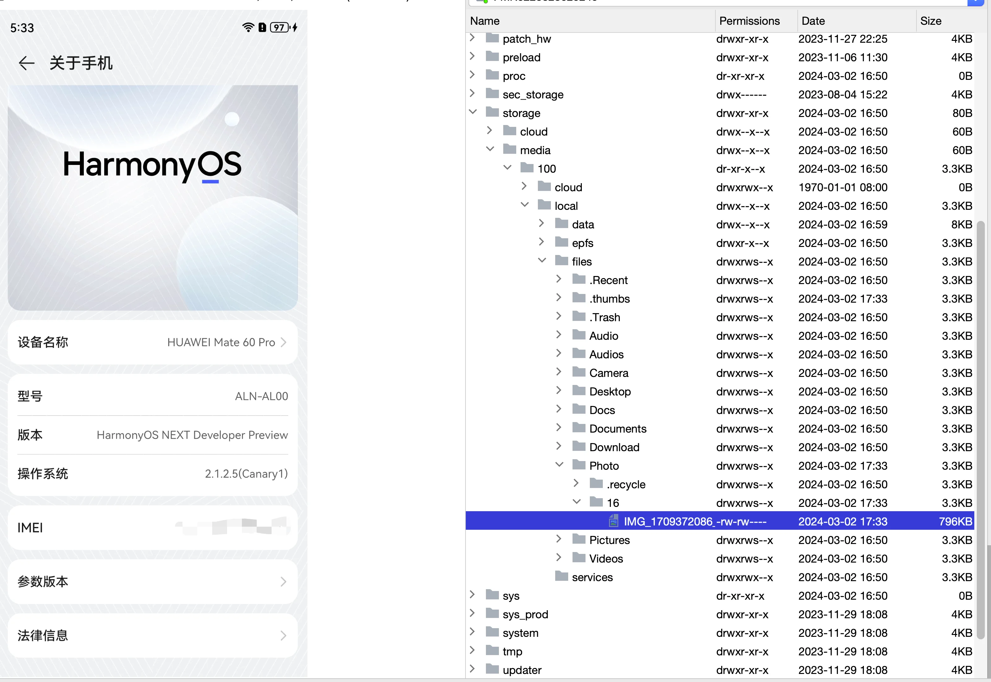 鸿蒙 的文件目录 比如 相册 是存在于/storage/media/100/local/files/Photo目录下.
