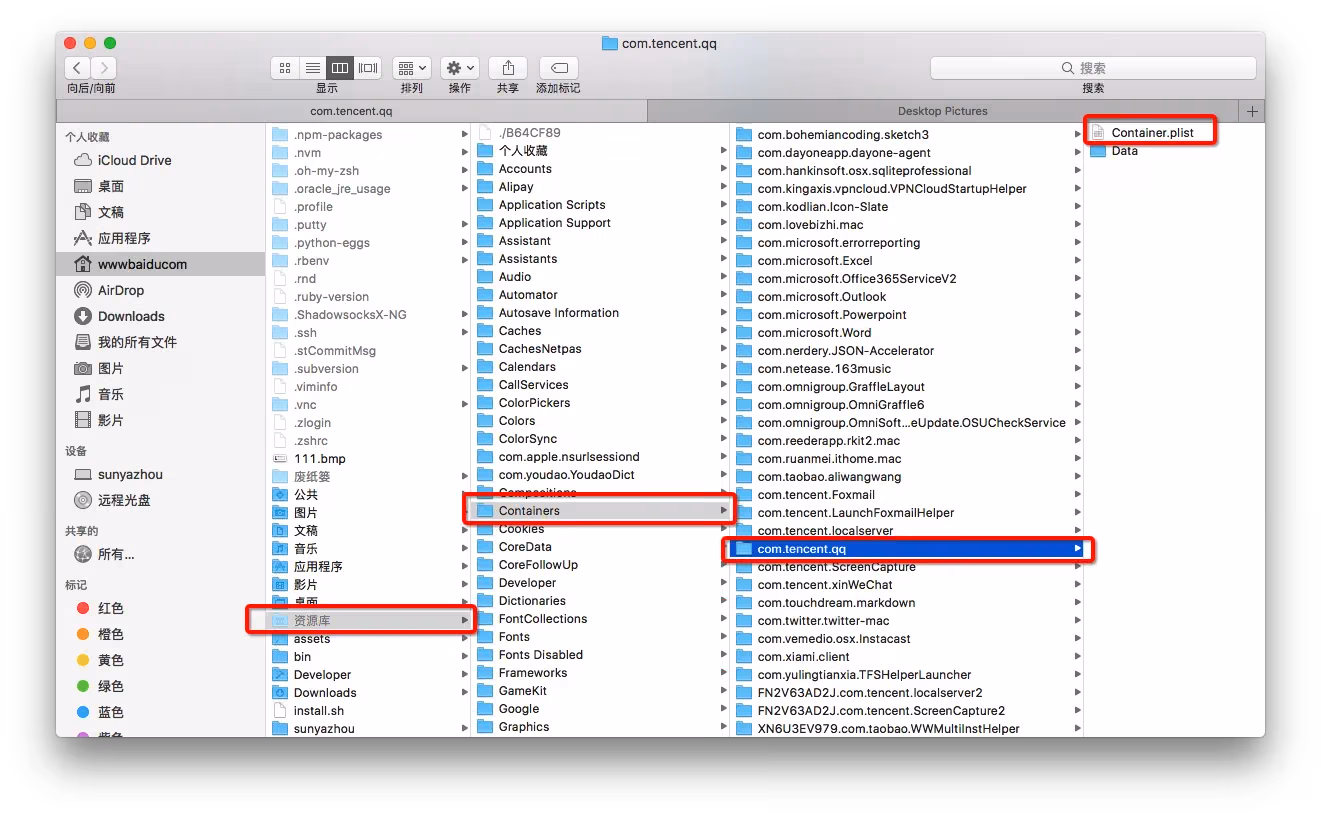 macOS应用沙盒权限(如下图) ~/Library/Containers/<my app>/Data/Library/Preferences/<my app>.plist eg:qq