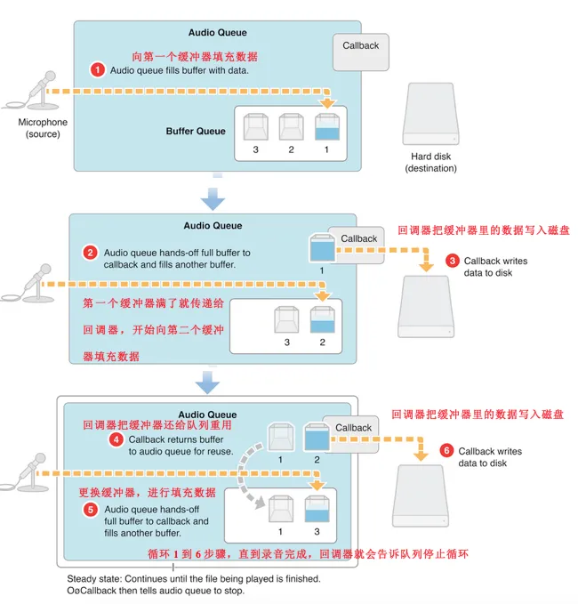 在AV Foundation中使用AVAudioRecorder类添加音频录制功能和使用AVAudioPlayer一样简单, 都是在Audio Queue Server上层构建的.同时支持macOS和iOS平台.可以从内置麦克风录制音频,也可以支持数字音频接口或USB外接麦克风录制.