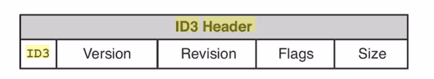ID3数据很easy,mp3前10个字节带有嵌入的元数据, 这10个字节定义了ID3块的头部.10个字节中的前三个字节始终为’49 44 33’(ID3,用于表示一个ID3v2标签,后面两个字姐用于定义主版本信息,既2、3、4和版本号.剩余字节用于定义标志集合及ID3快的大小.