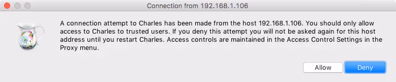 设置代理后,需在在电脑上打开Charles,这个时候 如果手机有请求就会弹出如下图:
