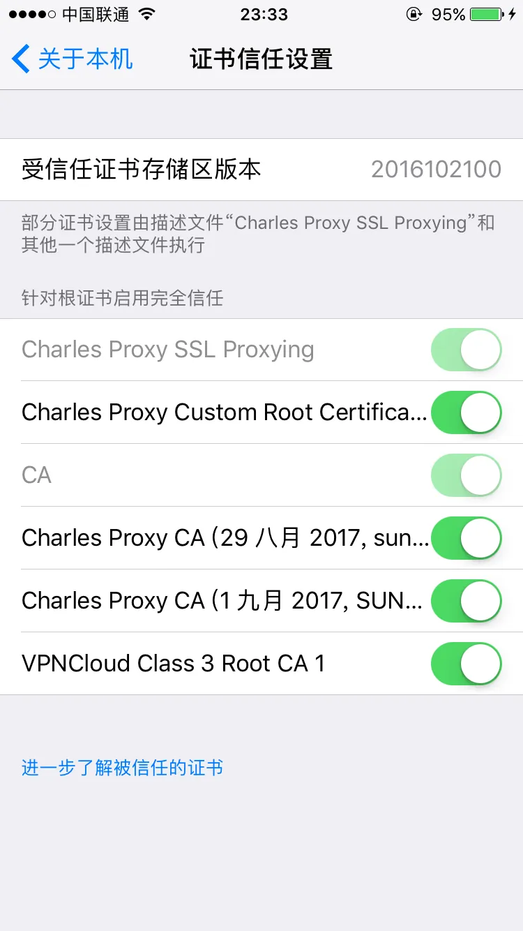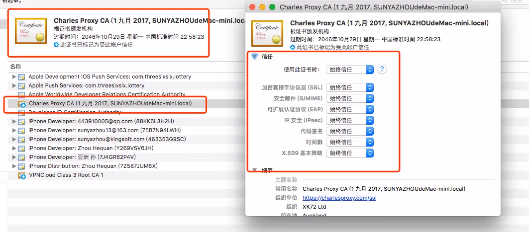 安装到钥匙串后 点击charles的root证书 选择 使用信任
