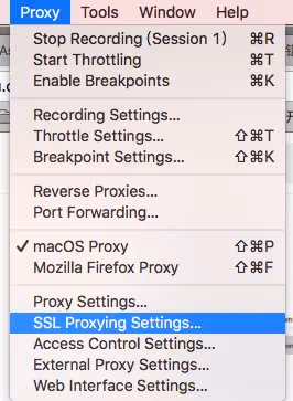 左上角菜单中 选择SSL Proxying Settings