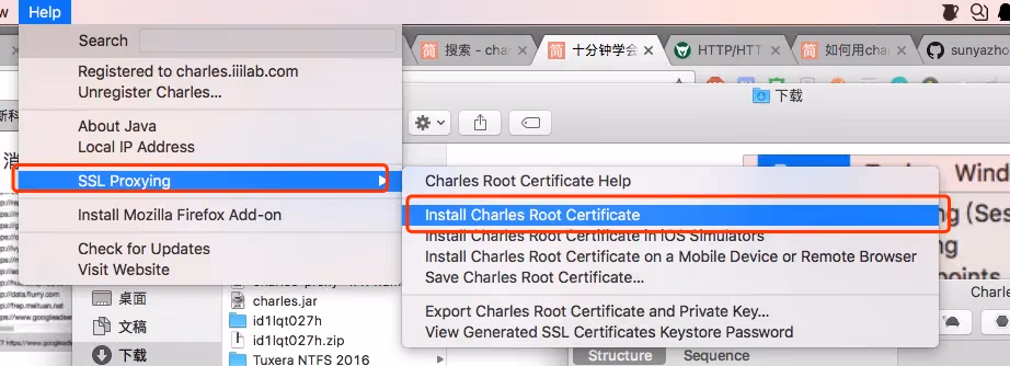 紧接着 点击Help -> SSL Proxying -> 安装根证书