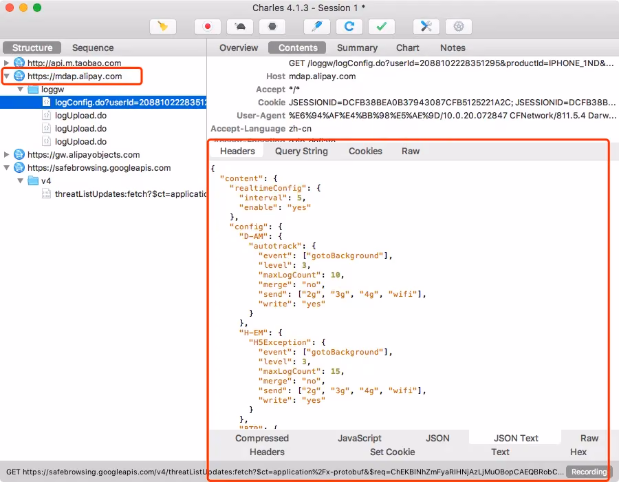 最后放上一张截获成功的图 (支付宝的接口)