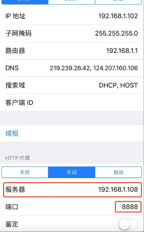 手机连上电脑,点击“设置->无线局域网->连接的WiFi”,设置HTTP代理: 服务器为电脑IP地址:如192.168.1.108 端口:8888