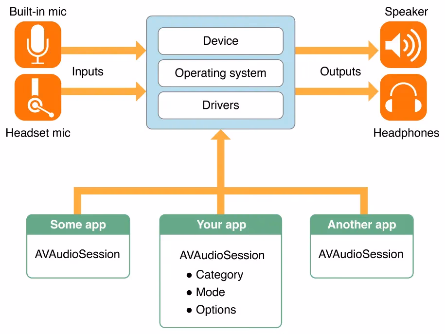 下图是AVAudioSession的工作流