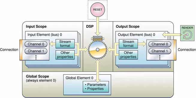 音频流从输入域(input scope)输入, 从输出域(output scope)输出 整个Render过程就是一次RenderCycle
