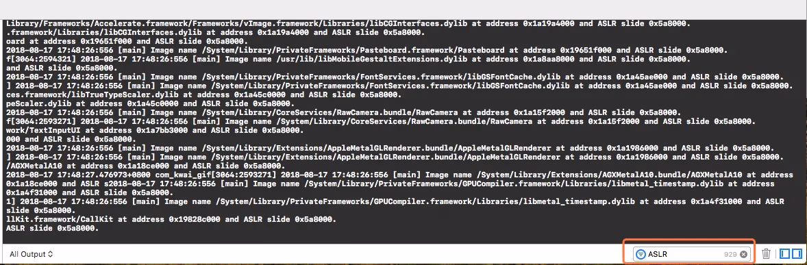 然后看下控制台 过滤一下 ASLR我们log中的键入内容