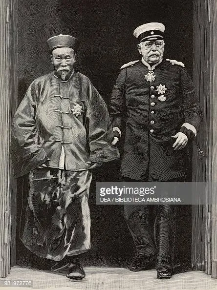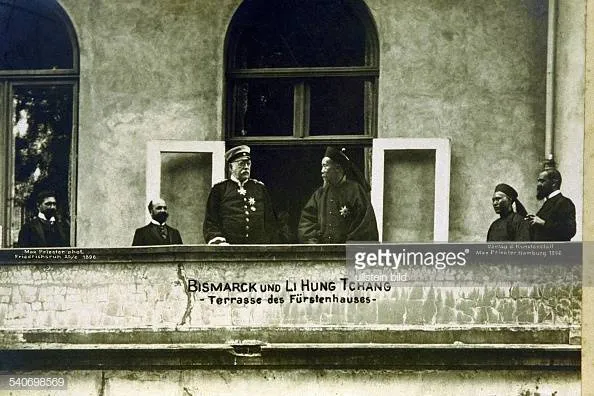 - 为了表示对李鸿章的尊重和敬意,俾斯麦的着装极为庄重,穿上了他极少穿的盛装——德皇所赐玉冕、红鹰大十字宝星,手拿大玉,腰挂宝剑。两人见面后,首先互相问候对方身体如何,交流了各自的身心健康问题。