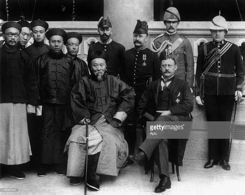 访问香港的李鸿章与香港总督卜力会面,站与李鸿章右侧者为刘学询,1900年7月。
