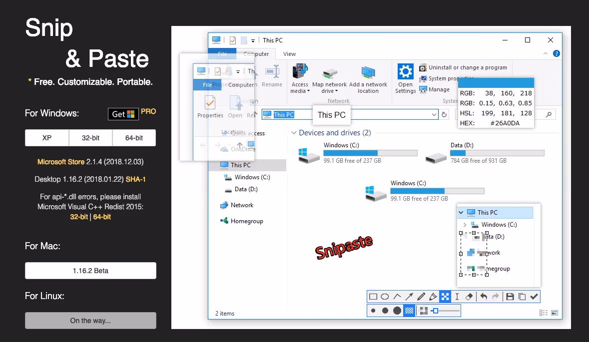 Snipaste是一个小巧强大的截图软件,可以直接对截图进行打码、标注、分享,而不用先保存到本地.