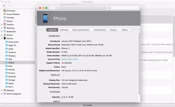 Mactracker提供了苹果全系列产品的所有信息,包括性能参数、售价等。可以进行检索,还有发布的时间顺序,方便查看。这个软件也有iOS版。