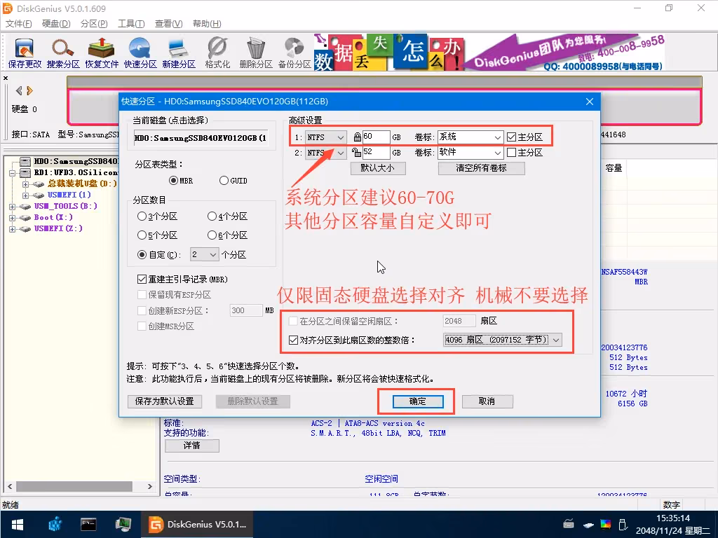 注:固态硬盘需要选择4K,机械硬盘不用现在 ,选择了会导致进不了系统