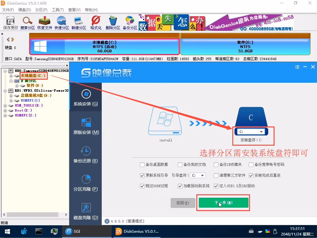 - ②选择需要安装系统的分区。[可以根据分区容量格式信息来判断分区]