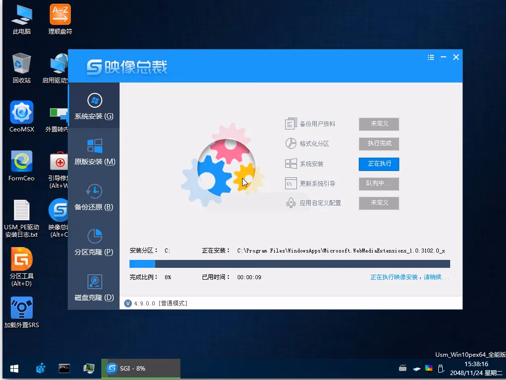 - ③点击执行按钮等待系统安装完成后重启拔掉U盘。