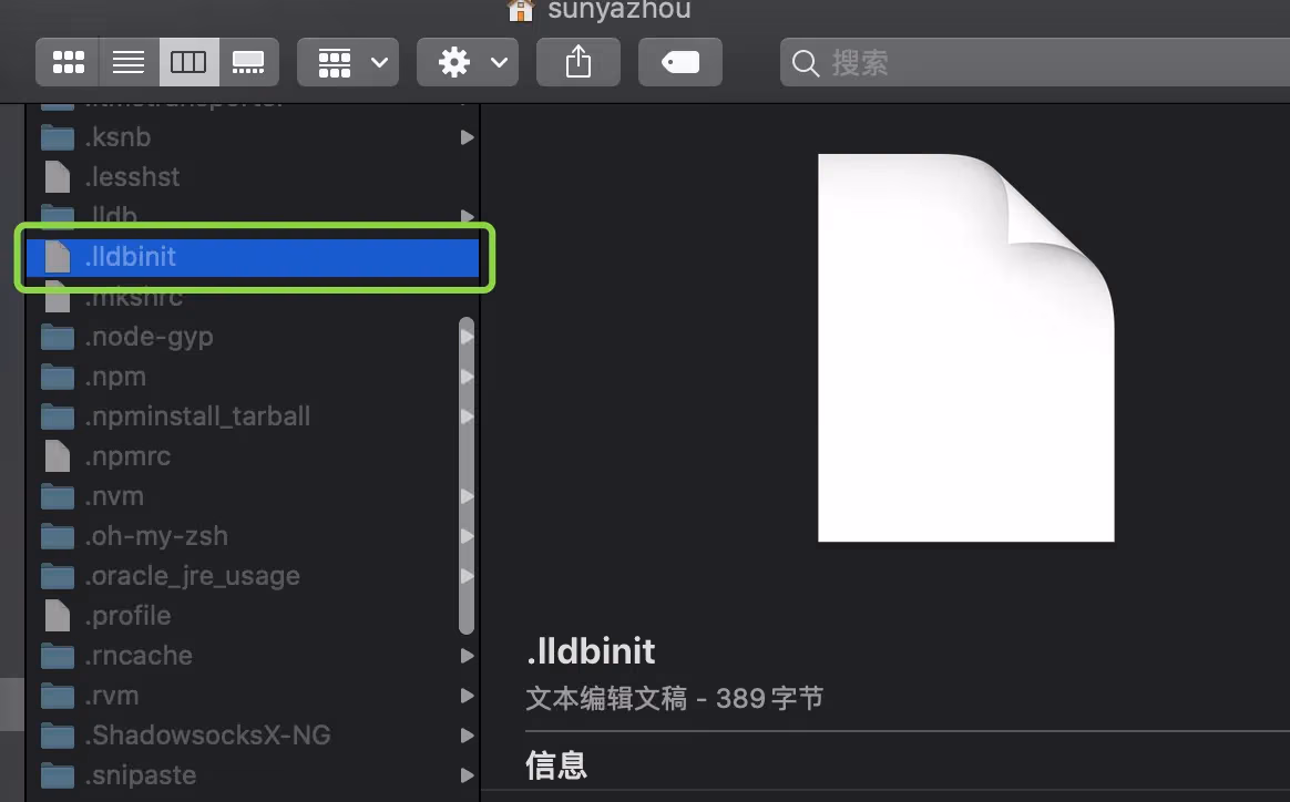 然后它会告诉你看下用户home目录有个隐藏文件 .lldbinit如果没有就创建一下