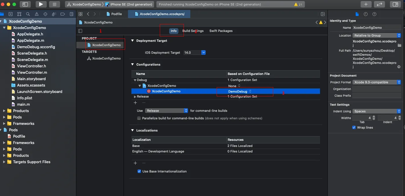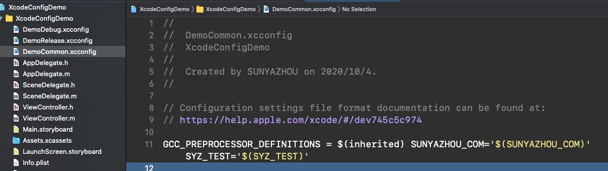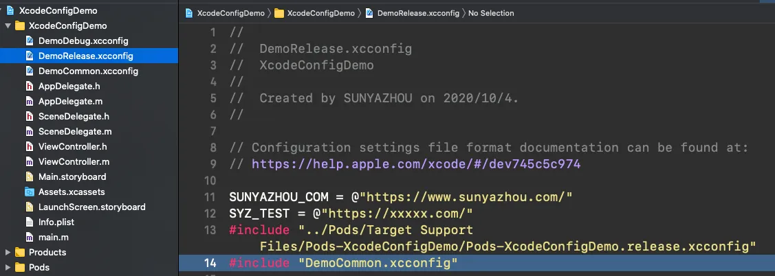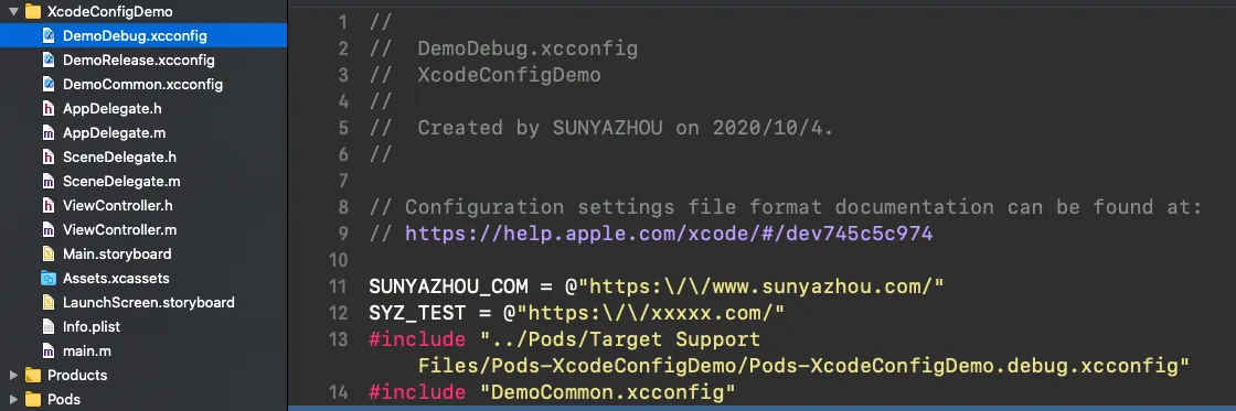 这里我加了一个通用的 DemoCommon.xcconfig 配置,为了向外输出公共的宏变量.