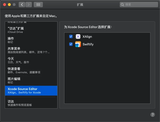 这几天要对代码进行对齐发现经常用的 XAlign插件不起作用了,一看设置中发现 扩展中没有了Xcode Source Editor