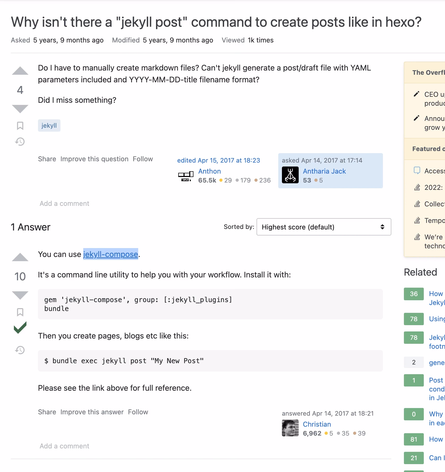 Why isn’t there a “jekyll post” command to create posts like in hexo?