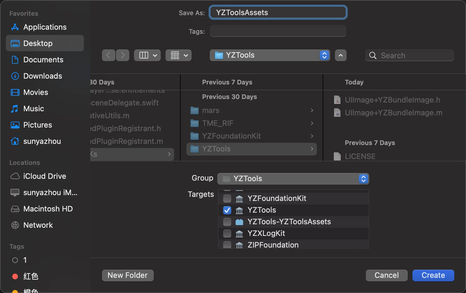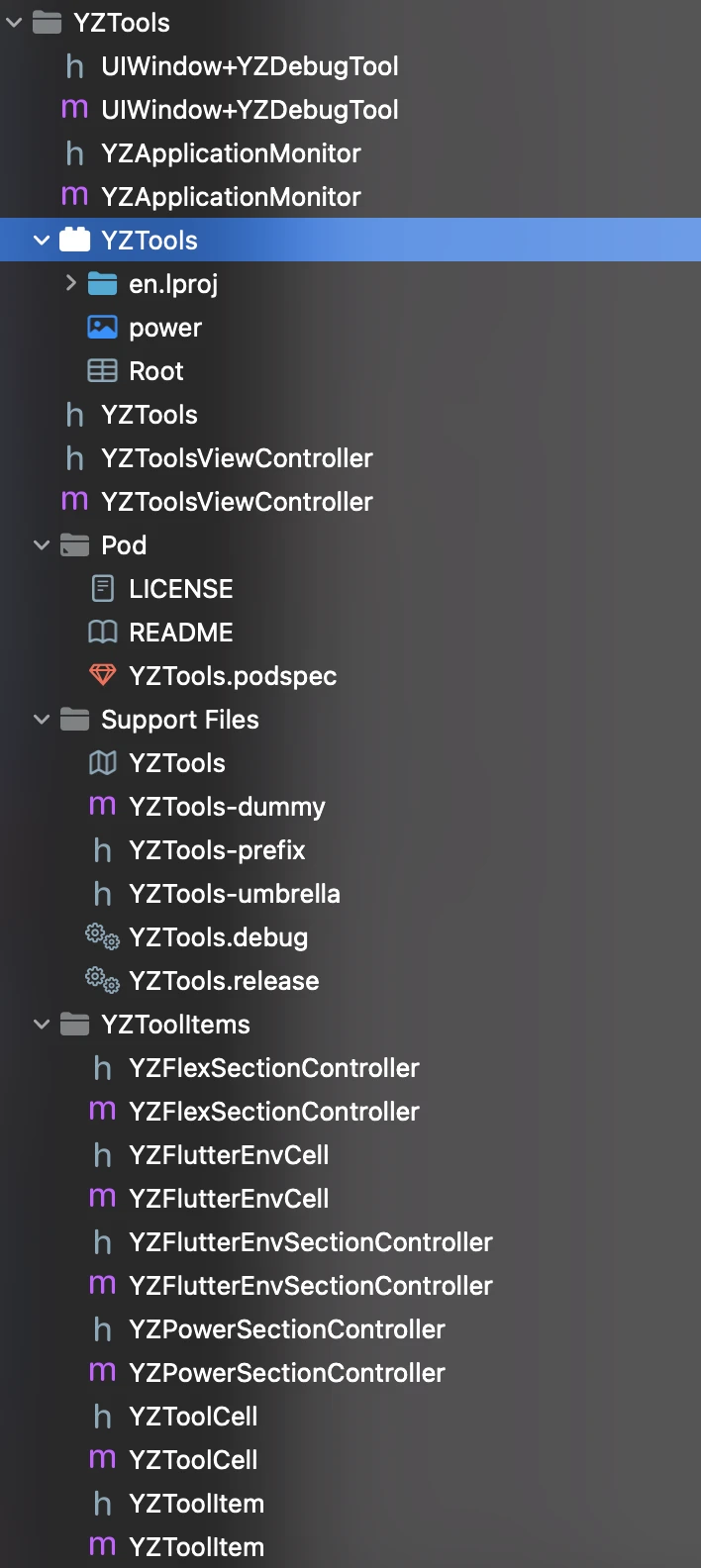 //这里的YZToolsAssets和YZTools.podspec里的spec.resource_bundles = {'YZToolsAssets' 完全对应