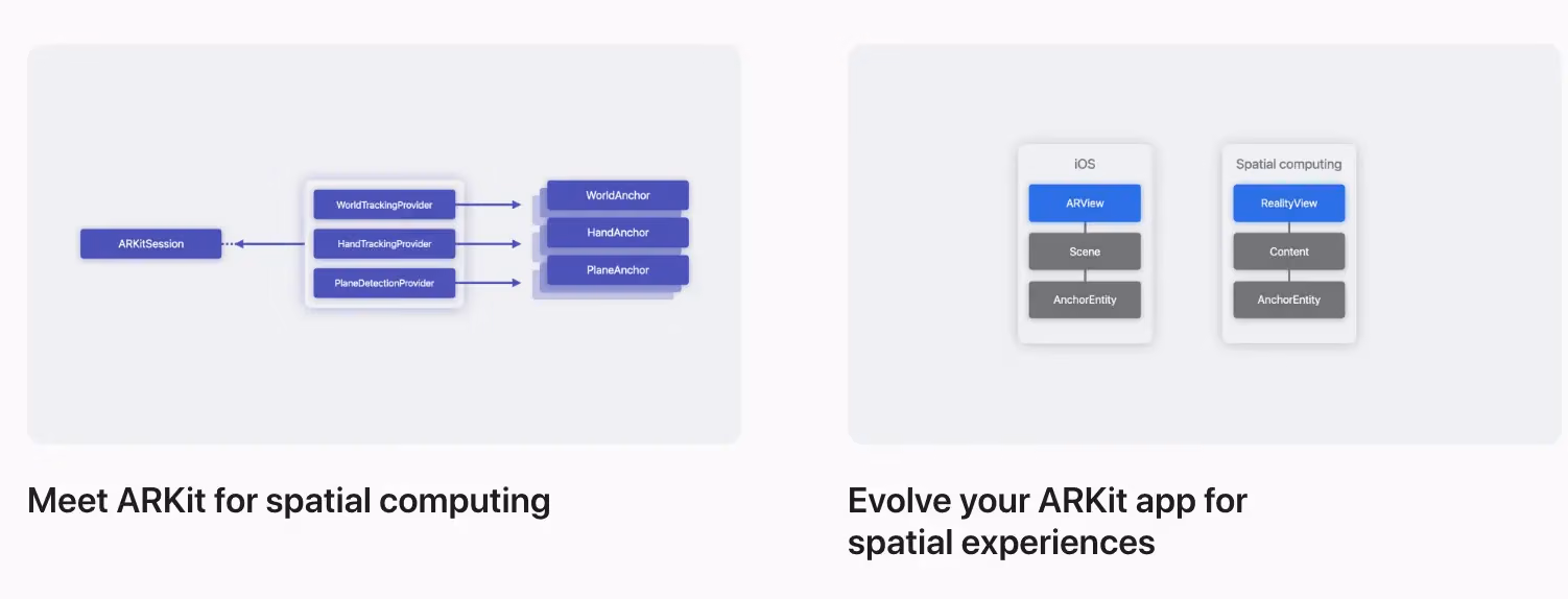 最后,我们将帮助您了解visionOS上的ARKit。该平台使用ARKit算法来处理持久性、世界映射、分割、抠图和环境照明等功能。这些算法一直在运行,允许应用程序和游戏在共享空间中自动受益于ARKit。一旦你的应用打开了一个专用的Full Space,它就可以利用ARKit api并将虚拟内容与现实世界融合在一起。