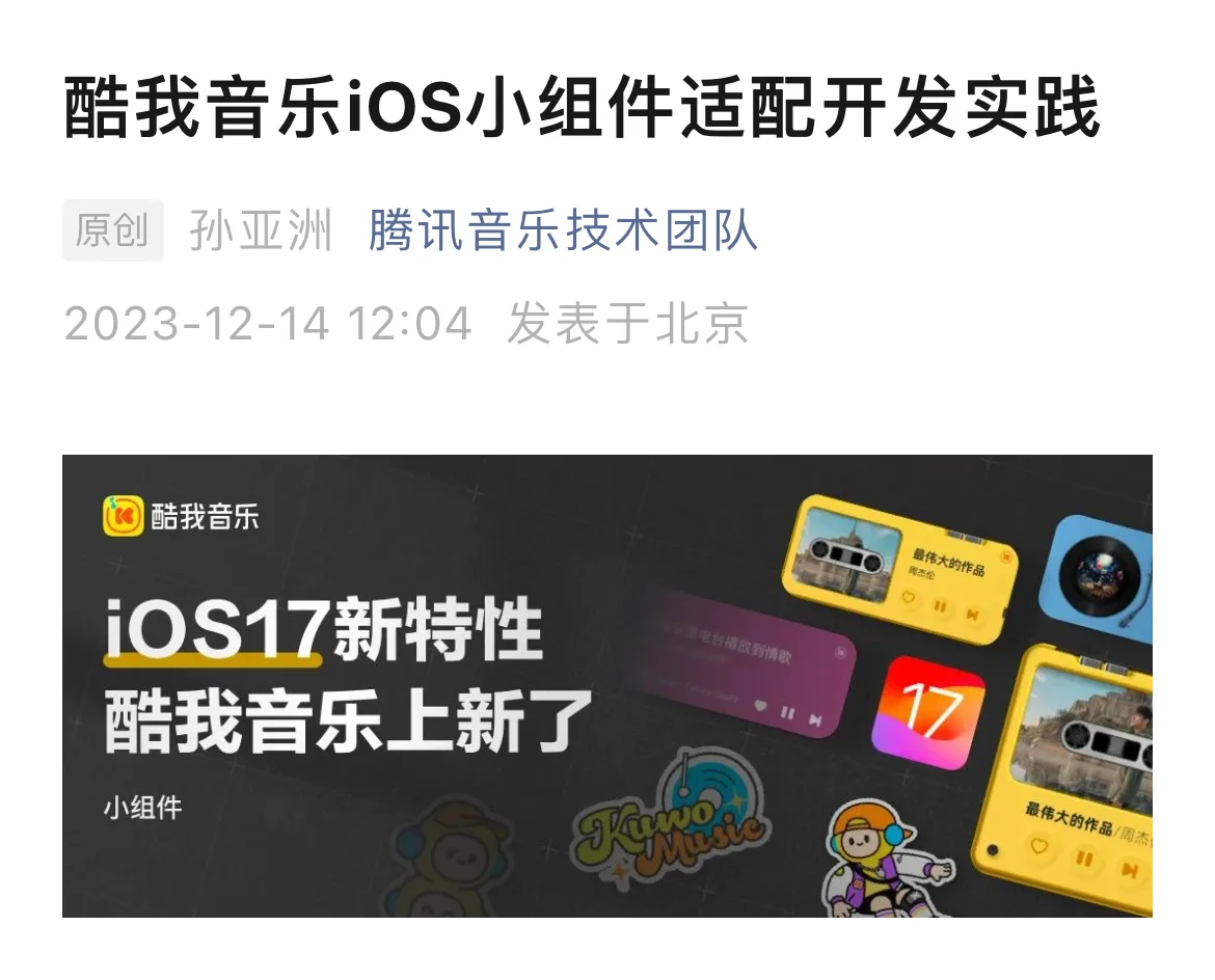 10月份开发的小组件,我向腾讯音乐技术团队的公众号投了一篇文章,介绍一些开发细节