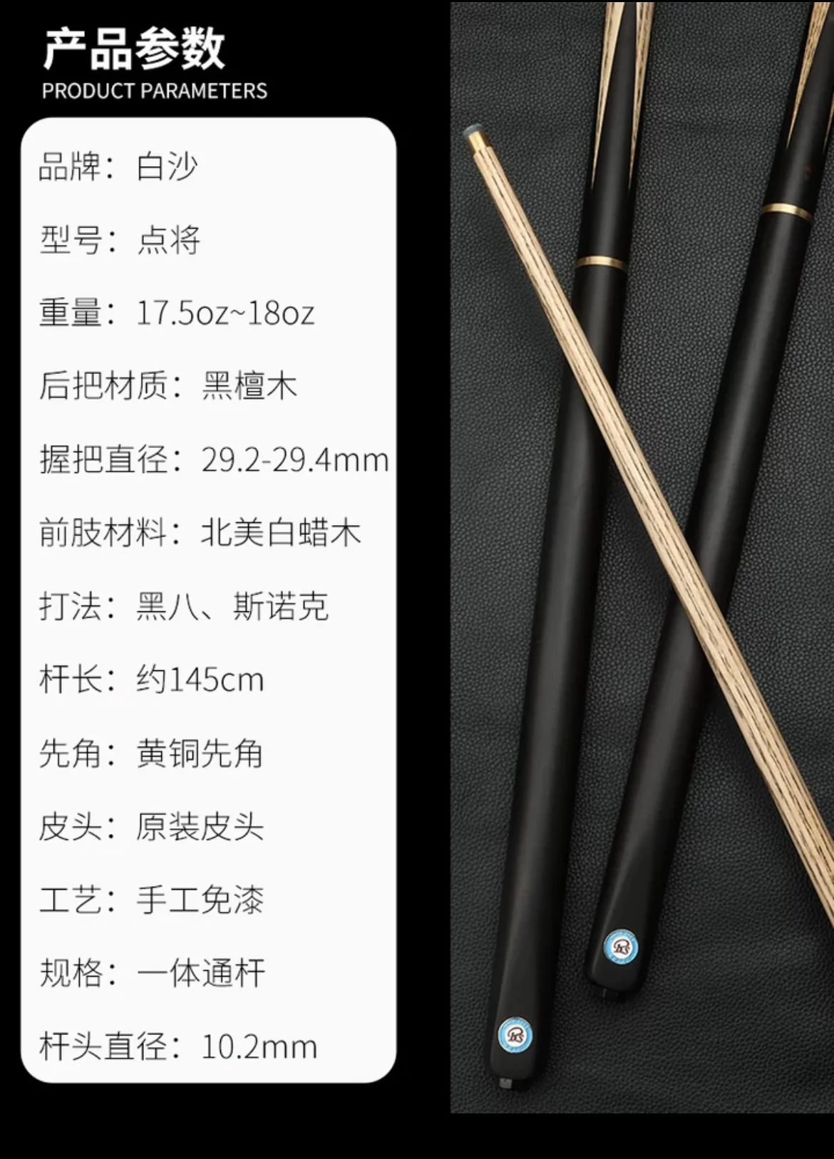 这个台球杆可以说1倍的价钱双倍的快乐,我选的是几百块钱的手工杆,不是很出名,是一个广东台山的很古老的手工杆品牌.白沙.用着质感和使用体验非常好.我很喜欢这只球杆.它陪伴我打球的过程中有很多运气加持.