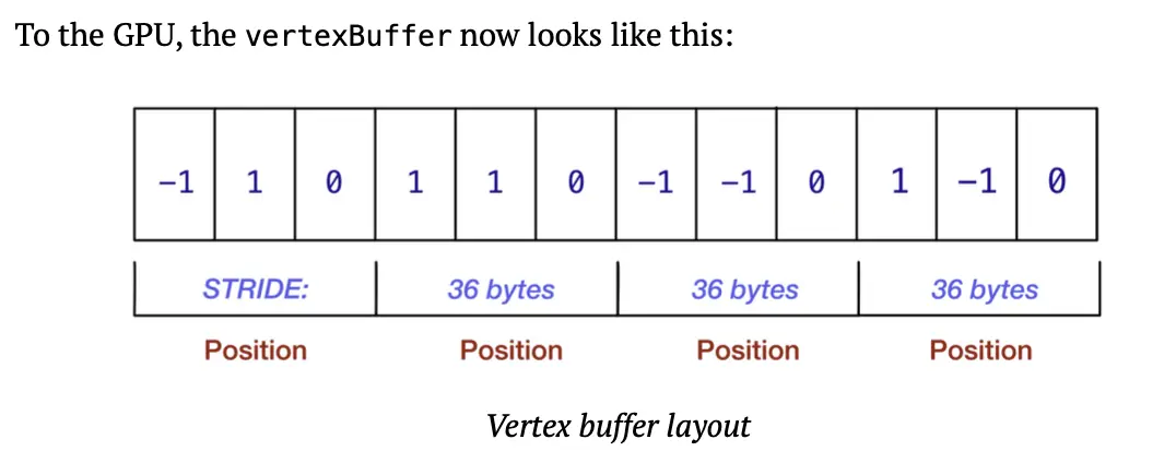 步长也是 4,这意味着在连续缓冲区中,值之间相隔 4 字节。不需要填充。